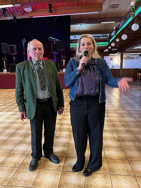 Der Obmann nahm auch die Gelegenheit wahr, um dem Jubelpaar Anna und Alois Gstöttenmayr zum seltenen Anlass der „Eisernen Hochzeit“ (65 Jahre) zu gratulieren. Die beiden sind ganz besondere Tanzfanatiker und besuchen seit etwa 30 Jahren die meisten Seniorenbälle im Bezirk, soweit es ihre Zeit erlaubt.